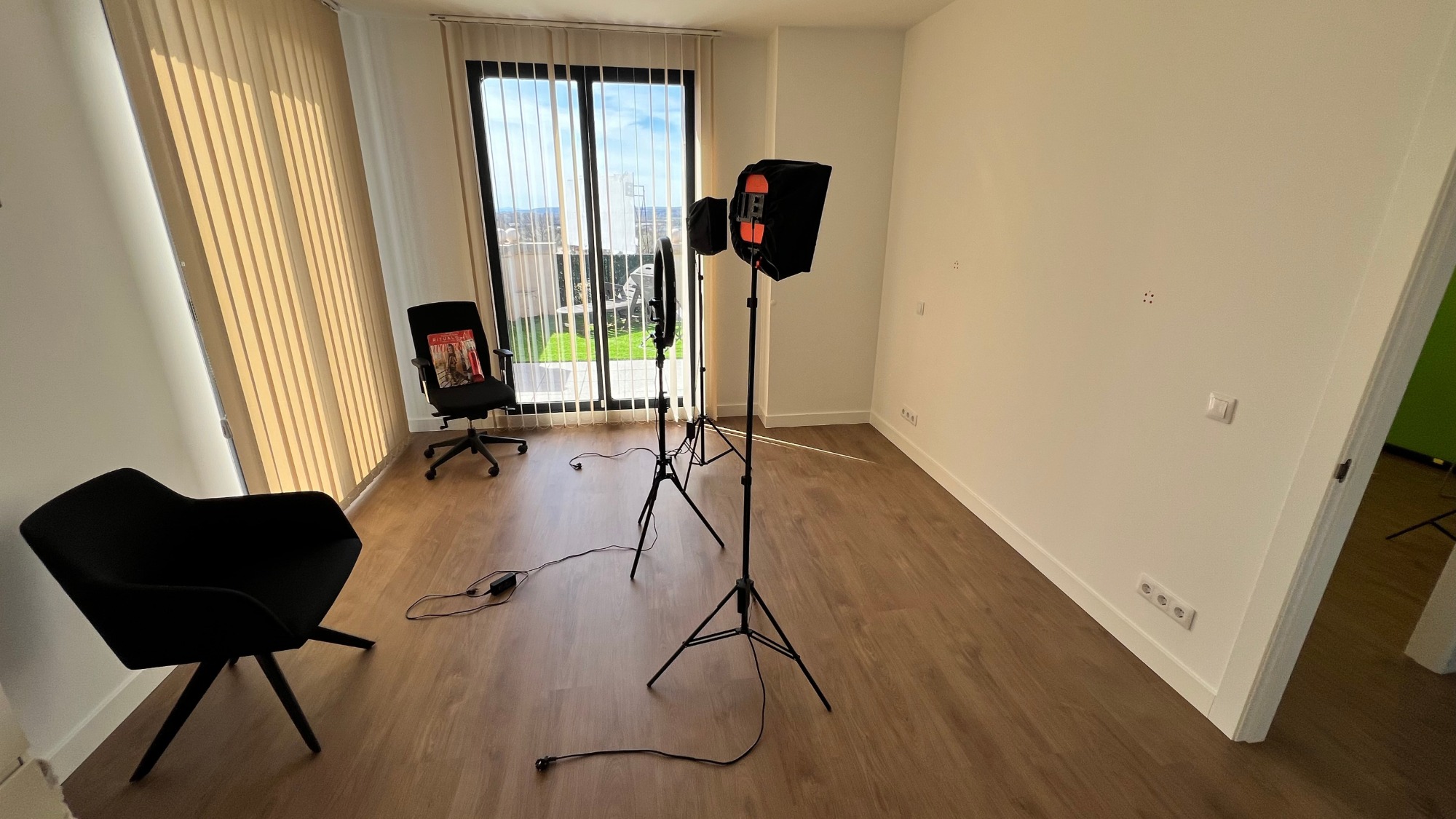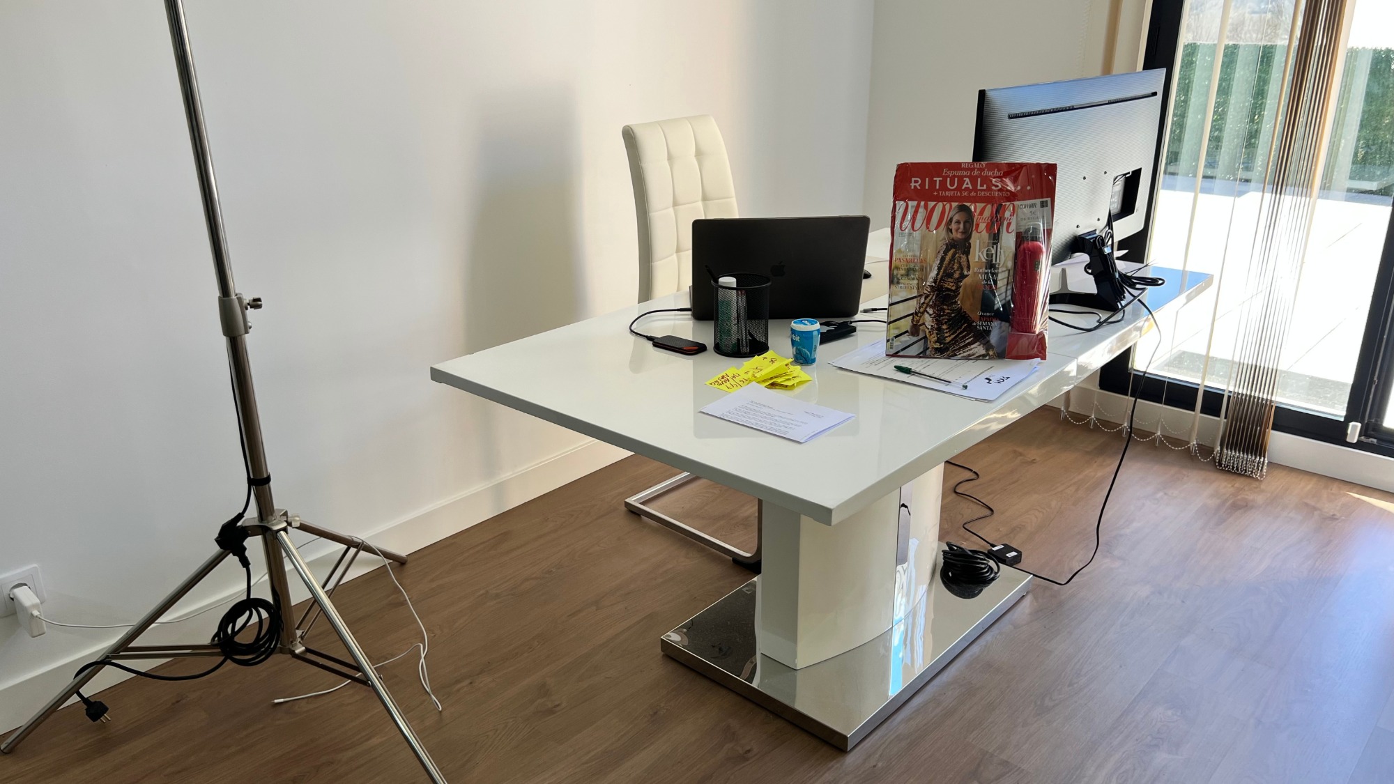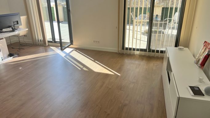 Toda la oficina cuenta con tarima flotante de alta calidad, rodapiés blancos y pintura lisa mate blanca lavable, además de puertas de madera de alta gama. La iluminación LED de diseño, incluida perimetral, crea un ambiente moderno, elegante y eficiente en consumo energético.